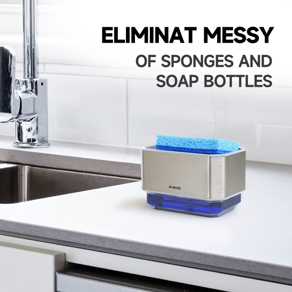 AIKE Dish Soap Dispenser and Sponge Holder for Kitchen Sink Brushed Stainless Steel. Get it here