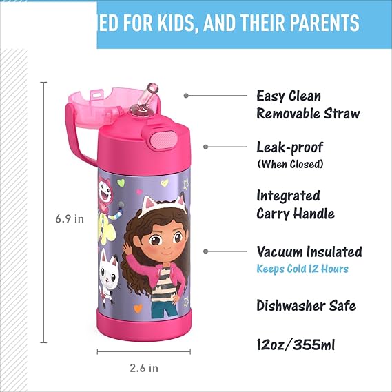THERMOS FUNTAINER Water Bottle with Straw – 12 Ounce – Kids Stainless Steel Vacuum Insulated Water Bottle with Lid. Get it here